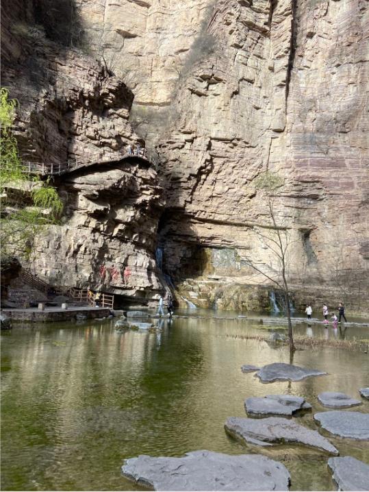 27日早上在公司集合后,大家乘坐大巴車經(jīng)過三個小時的行程,到達(dá)了太行大峽谷景區(qū)。入住酒店及午餐后,首先游覽了有太行魂之稱的王相巖景區(qū)。王相巖景區(qū)唐以來,享有盛名,景區(qū)東臨溪水,西依懸崖,左右兩側(cè)峭壁環(huán)繞,形成了一個閉合性極強(qiáng)的圍谷,暗合中國古代風(fēng)水學(xué)“左青龍、右白虎、前朱雀、后玄武”的理想模式,吸引了歷代名人雅士來此修身隱居在攀爬過程中,陡峭、曲徑隨處可見。大家一方面驚嘆大自然的巧奪天工,一方面感受大自然的美。